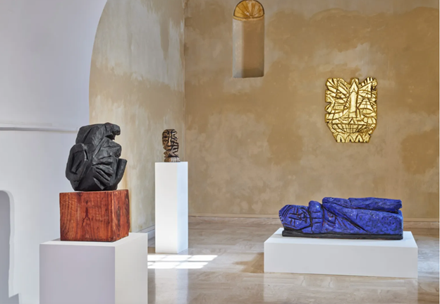 Encounter carved wooden figures drawn from desert trees, revealing an intuitive practice of excavation where form, matter, and landscape con