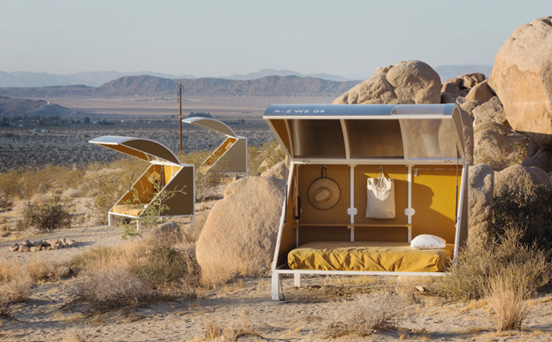 A guided walk through sculptural desert cabins where architecture, absence, and landscape merge, revealing a quiet meditation on shelter.